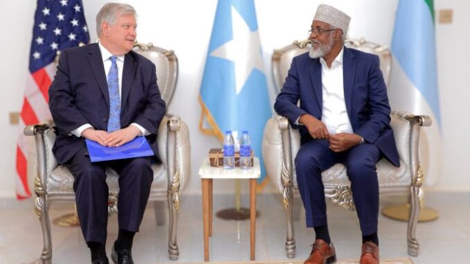Madaxweynaha Dowladda Jubaland, Mudane Axmed Maxamed Islaam, ayaa maanta Magaalada Kismaayo ku qaabilay Safiirka Dowladda Maraykanka ee Soomaaliya, Danjire Richard H. Riley, iyo wafdi uu hoggaaminayo oo booqasho shaqo ku yimid Jubaland.