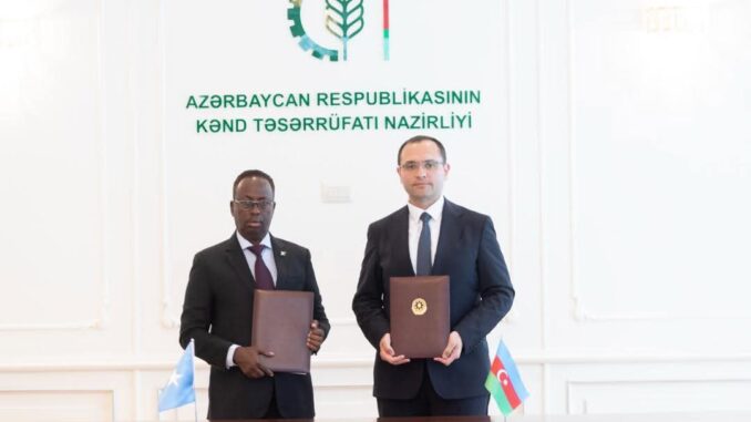 Dowladaha Soomaaliya iyo Azerbaijan ayaa kala saxiixday heshiis hordhac ah oo ku saabsan hormarinta iyo maalgashiga beeraha, ka dib kulanka magaalada Baku ku dhex maray Wasiirrada beeraha labada dal Maxamed Xayir Maareeye iyo Majnun Mammadov.