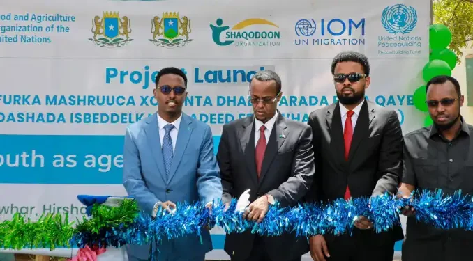 Madaxweynaha mamaulka Hirshabeelle Cali Cabdullaahi Xuseen (Cali Guudlaawe) oo ay wehliyaan Wasiirka Wasaaradda Dhallinyarada iyo Isboortiga XJFS Xildhibaan Maxamed Barre Maxamuud iyo Wasiirka Wasaaradda Dhallinyarada iyo Isboortiga Hirshabeelle Maxamed Xuseen Ceynte ayaa daah-furay mashruuca dhallinyarada iyo nabadda.