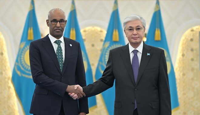 Madaxweynaha Jamhuuriyadda Kazakhstan, Kassym Jomart Tokayev, ayaa si rasmi ah uga guddoomay warqadihii aqoonsiga danjirinimo safiirka cusub ee Soomaaliya u fadhi doona dalkaasi, Fatxudiin Cali Maxamed.