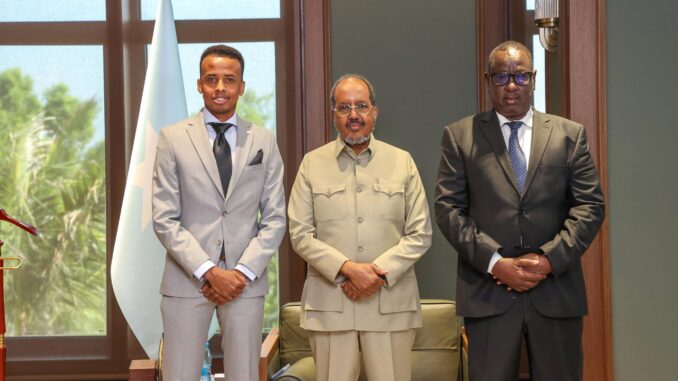 Madaxweynaha Jamhuuriyadda Federaalka Soomaaliya Mudane Xasan Sheekh Maxamuud oo xusaya sumcadda iyo maamuuska uu dadka Soomaaliyeed u soo hoyey ayaa ku qaabilay Madaxtooyada Qaranka Garsoore Cumar Cabduqaadir Cartan oo ku guuleystay abaalmarinta Garsooraha ugu fiican Afrika ee sannadka 2025 oo ay guddoonsiiyeen Xiriirka Kubadda Cagta Afrika ee CAF.