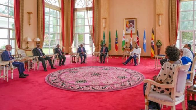 Madaxweynaha Jamhuuriyadda Federaalka Soomaaliya Mudane Xasan Sheekh Maxamuud ayaa ka qaybgalay shir-madaxeedka dalalka qaybta ka ah howlgalka taageerada Midowga Afrika ee Soomaaliya (AUSSOM) iyo saaxiibbada caalamiga ah, kaas oo lagu qabtay Madaxtooyada dalka Uganda ee magaalada Entebbe.