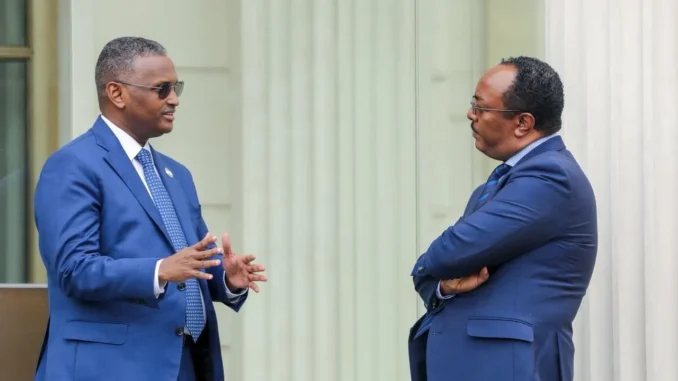 Taliyaha Hay’adda Sirdoonka iyo Nabadsugidda Qaranka (NISA), Mudane Mahad Salaad, iyo Taliyaha Sirdoonka dalka Itoobiya, Ridwaan Xuseen oo maanta kulan ku yeeshay magaalada Addis Ababa ee caasimadda Itoojiya.