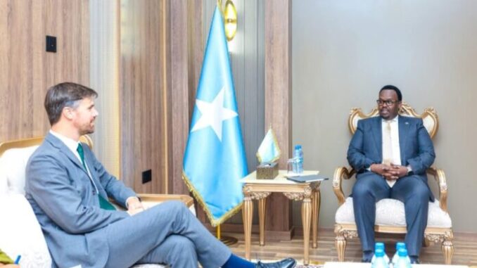 R/Wasaare ku xigeenka xukuumadda Federaalka Soomaaliya Saalax Axmed Jaamac ayaa maanta qaabilay Danjiraha cusub ee UK u fadhiya Soomaaliya Mr. Charles Nicholas King, kaas oo ay ka wada hadleen xoojinta iskaashiga u dhaxeeya labada dal, gaar ahaan dhinacyada amniga, siyaasadda, la-dagaallanka Khawaarijta, doorashooyinka iyo dardar-galinta Mashaariicda horumarineed ee UK ay ka taageerto Soomaaliya.