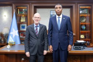 Ra’iisul Wasaaraha Soomaaliya Xamsa Cabdi Barre, ayaa xafiiskiisa ku qaabilay Ku-simaha Ergeyga Gaarka ah ee Xoghayaha Guud ee Qaramada Midoobay u qaabilsan Soomaaliya Danjire James Swan.Kulanka ayaa looga hadlay wadashaqeynta dowladda iyo hey’adaha Qaramada Midoobay, teegaarada qorshaha dowladda ee doorashooyinka qof iyo cod ah, hawlgalka cusub ee Midowga Afrika AUSOM.