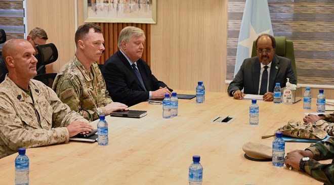 Magaalada Muqdisho Waxaa ka dhacay kulan dheer oo dhexmaray Madaxweynaha Soomaaliya, Xasan Sheekh Maxamuud, iyo Taliyaha cusub ee Taliska Ciidamada Mareykanka ee Afrika (AFRICOM), Jeneral Dagvin R. M. Anderson iyagoo diirada ku saaray dagaalka ka dhanka ah al shabaab.
