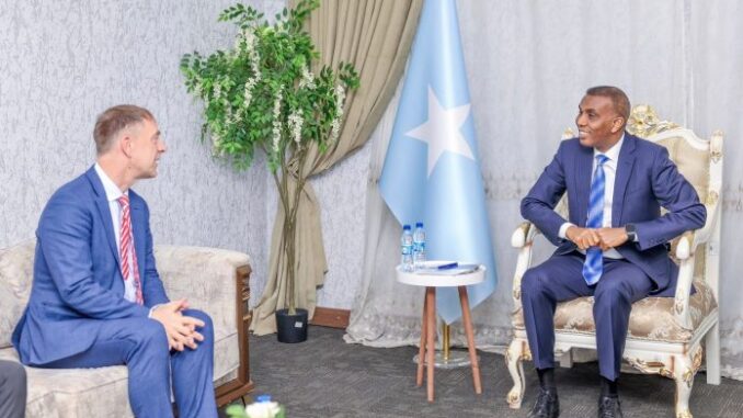 Ra’iisul Wasaaraha Xukuumadda Jamhuuriyadda Federaalka Soomaaliya, Mudane Xamsa Cabdi Barre, ayaa xafiiskiisa ku qaabilay Danjiraha Jamhuuriyadda Jarmalka u fadhiya Soomaaliya, Sebastian Groth.