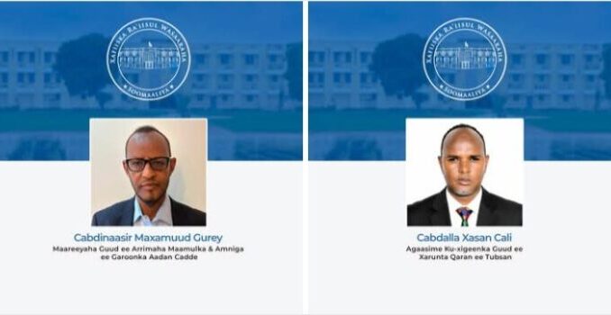 Ra’iisul Wasaaraha Xukuumadda Jamhuuriyadda Federaalka Soomaaliya Mudane Xamsa Cabdi Barre, ayaa Magacaabay Maareeyaha Guud ee Arrimaha Maamulka iyo Amniga Garoonka Muqdisho iyo Agaasime Ku-xigeenka Guud ee Xarunta Qaran ee Tubsan.