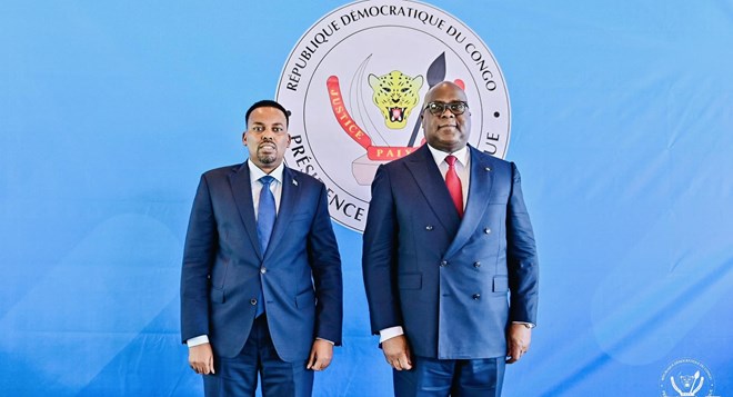 Safiirka Soomaaliya ee Jamhuuriyadda Dimuqraadiga ah ee Congo (DRC), Ilyas Cali Xasan, ayaa si rasmi ah ugu wareejiyay waraaqihiisa aqoonsiga Madaxweynaha DRC, Félix Antoine Tshisekedi Tshilombo, munaasabad lagu qabtay Qasriga Qaranka ee magaalada Kinshasa.
