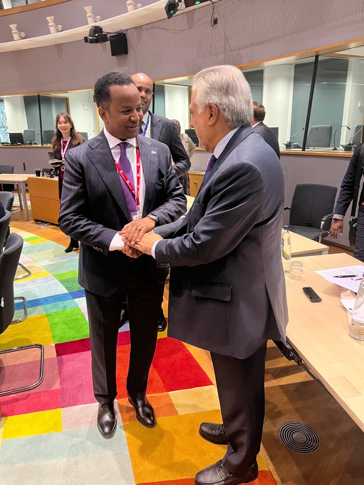 Wasiirka Arrimaha Dibedda iyo Iskaashiga Caalamiga ah, Mudane Abdisalam Abdi Ali, ayaa maanta kulan la qaatay Ra’iisul Wasaare Ku Xigeenka ahna Wasiirka Arrimaha Dibedda Jamhuuriyadda Islaamiga ah ee Pakistan, Senator Mohammad Ishaq Dar,  Ayaa Ka wada Hadlay Xaalada labada wadan inta uu socdey shirka 4aad ee Madasha Wasiirrada EU Indo-Pacific ee magaalada Brussels.